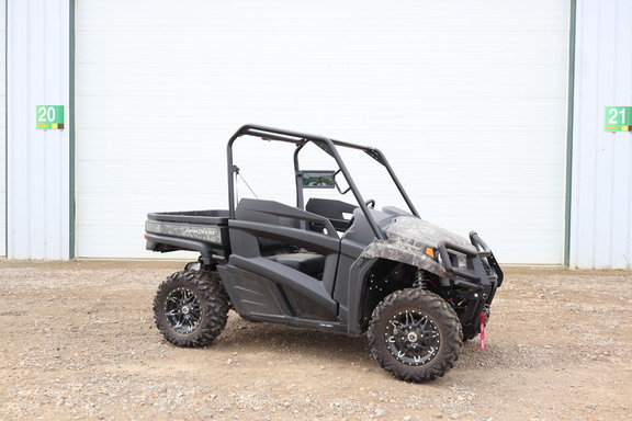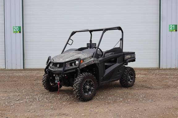 Stock #152055. Camo, 32 HP, 500lb Cargo Box Capacity, 1500lbs Towing Capacity, Bighorn Tires on Black Alloy Rims, Half Doors, Front Brushguard, Ultimate Comfort and Convenience Package - Includes Cargo Box Power Lift, Dual Beam LED Headlights, LED Brake and Taillights, Cargo Box Power Port, Reverse Lights, Hazard Lights, Horn, and Winch.