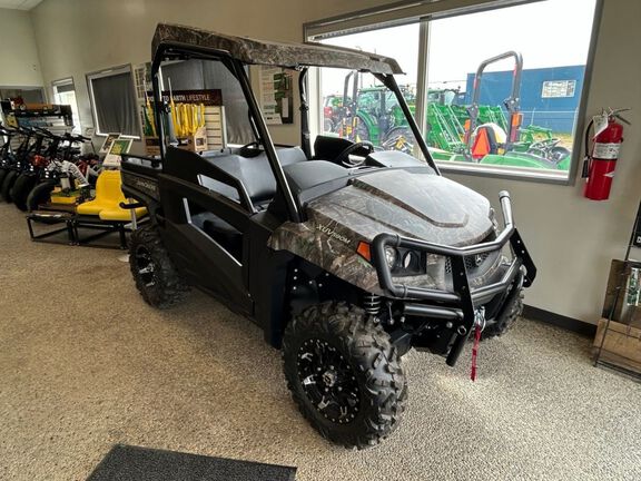 Stock #309215. Camo, 32 HP, 500lb Cargo Box Capacity, 1500lbs Towing Capacity, Bighorn Tires on Black Alloys, Half Doors, Camo Roof, Ultimate Protection Package, Ultimate Comfort and Convenience Package - Includes Cargo Box Power Lift, Dual Beam LED Headlights, LED Brake/Taillights, Cargo Box Power Port, Reverse Lights, Turn Signals, Hazard Lights, 4500lb Winch.
