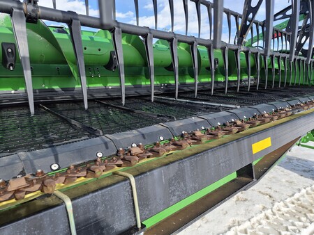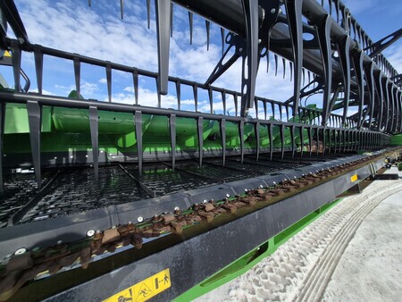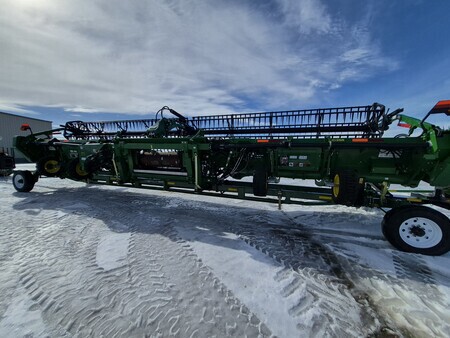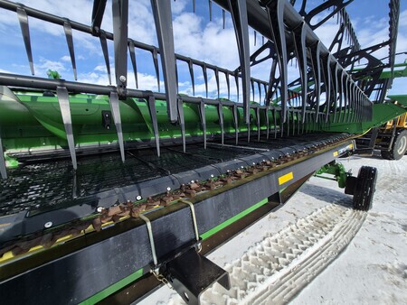 2023 JOHN DEERE HD35R 35' HINGED DRAPER W/ HORST TRANSPORT, MY20+ "S" COMPATIBILITY, SHORT GUARDS, FINE TOOTH KNIFE, FINGERED TOP AUGER, STANDARD REEL, GRAIN SAVER BELTS, SIDE KNIFE READY, WING LEVELING, CENTER SECTION SEAL KIT, CENTER CROP FLOW DIVIDER