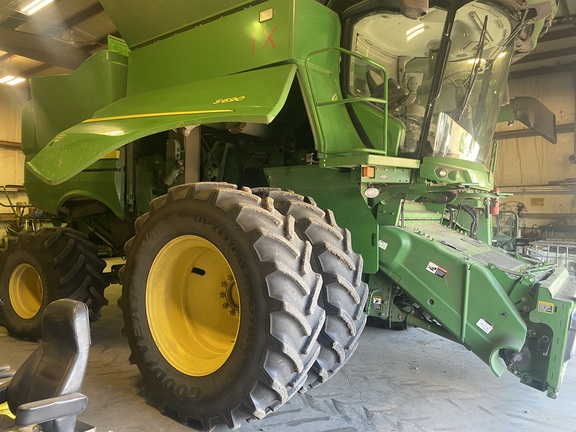 2017 JOHN DEERE S690 COMBINE w/ 615P PICKUP PLATFORM, "AS IS", FT4, 580/85R42 R1W DUALS, 750/65R26, GOODYEAR, PREM CAB, RADIO, Y&M, LED & EXTREMITY, CM, 80 MM CYLINDERS, 26' AUGER, ICA, ACTIVE TERRAIN, POWER FOLDING HOPPER, POWERCAST TAILBOARD, PRODRIVE, HARVESTSMART, SIDEHILL, AMS: GS3 7" TOUCH SCREEN, AUTOTRAC READY