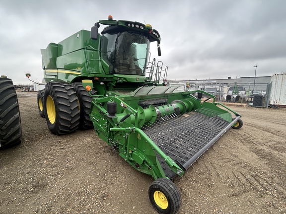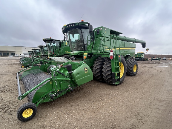 2018 JOHN DEERE S780 COMBINE W/ 615P PICKUP PLATFORM, "AS IS", SMALL TOUGH GRAINS REG WEAR, PREMIUM CAB, VENTILATED/LEATHER W/SWVL, LED LIGHTS & EXTREMITY, COMBINE ADVISOR PACKAGE, POWER FOLDING COVERS, 28.5FT/8.7M UNLOAD AUGER, FINE CUT CHOP ADV POWERCAST, 750/65R26 REAR TIRES, 650/85R38 DUALS, AMS: GEN4 CMD CNT 10" W/EXT MNTR, SF6000 WITH SF1, CMD CENTER PREMIUM ACTIVATION