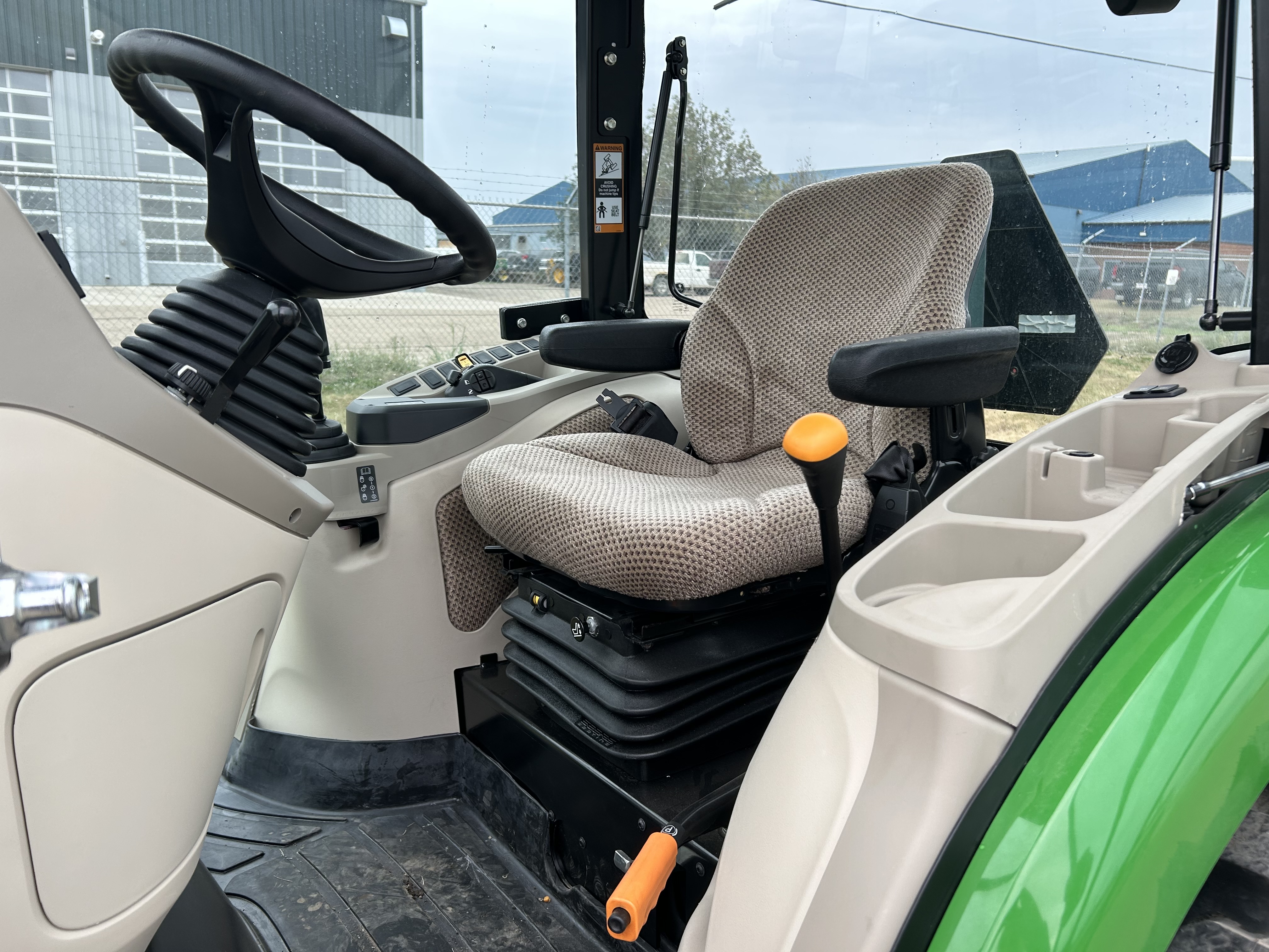 Operator presence system means the tractor will come to a stop if the operator leaves the seat but will not shut off unless the power take-off (PTO) is also running.
