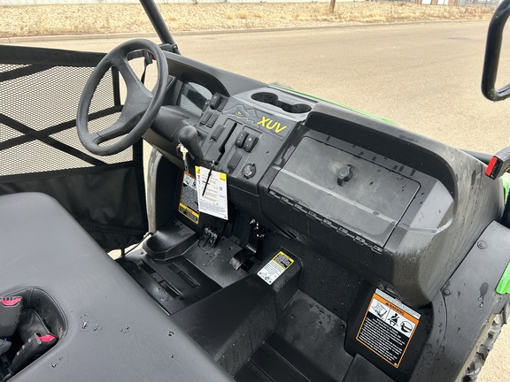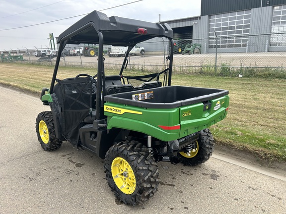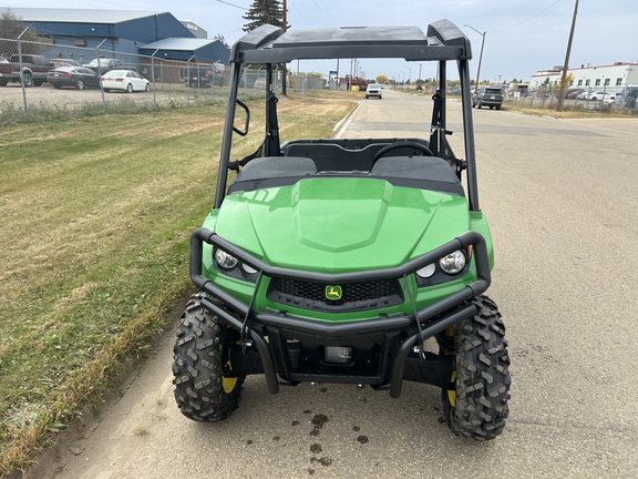 Stock #332927. Green & Yellow, 32 HP, 500lb Cargo Box Capacity, Bighorn Tires on Alloy Rims, Front Brush Guard, Poly Roof.