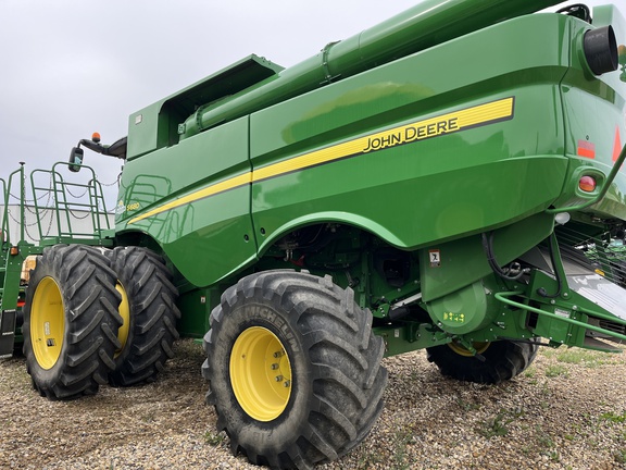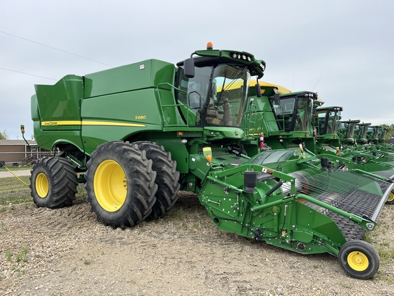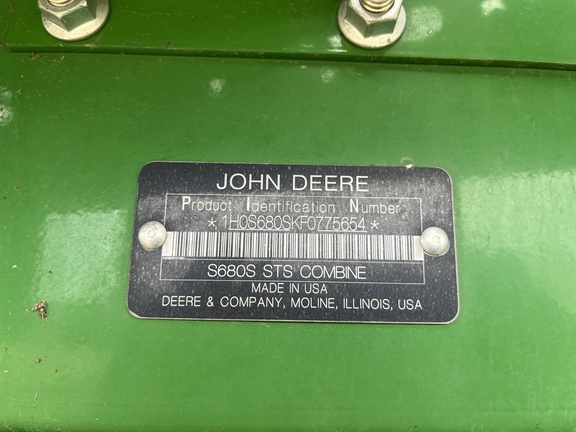 2015 JOHN DEERE S680, FT4, 520/85R42 R1W DUALS, 750/65R26, PREMIUM CAB, VENTILATED/LEATHER PACKAGE, PREMIUM RADIO, LED LIGHTS & EXTREMITY, ATA, CONTOURMASTER, 80MM LIFT CYLINDERS, 26' UNLOAD AUGER, PREMIUM FINE CUT CHOPPER- ADVANCED POWERCAST TAILBOARD, PRODRIVE, HARVESTSMART, SUNNYBROOK CONCAVES, 2WD, 615P HEADER (S/N 1H00615PKF0775379), CROP CATCHER AND AMS: MOUNTED GS3 2630.